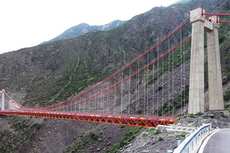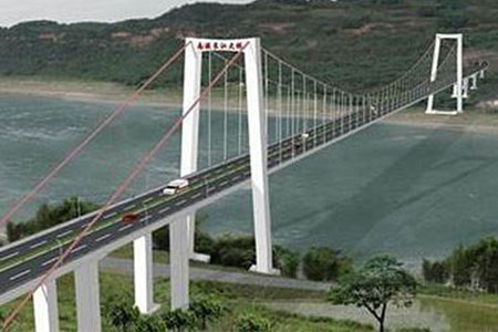 赤水河大桥为地锚式悬索桥,主跨1200米...