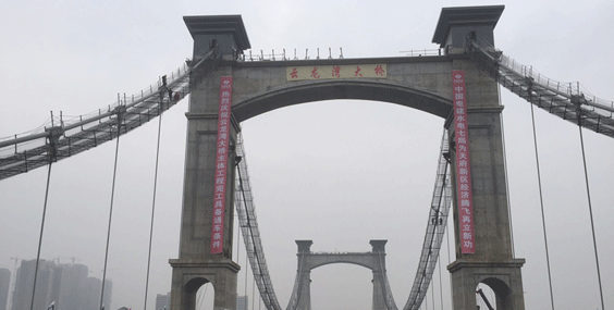 中国首座大跨度铁路悬索桥-丽香铁路金沙江特大桥 首个散索鞍顺利安装到位