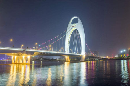 猎德大桥主桥为独塔双索面空间自锚式悬索桥,采用47米+167米+219米+...