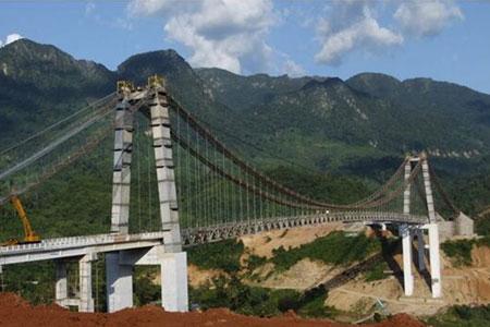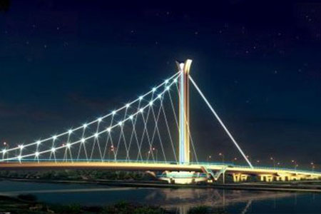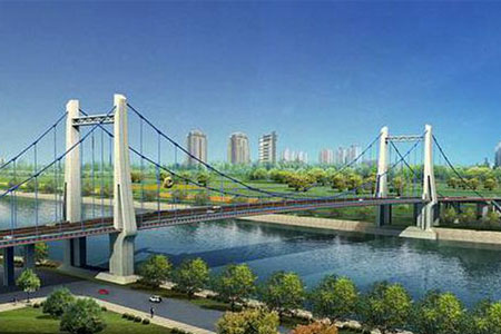 邵阳桂花大桥采用双塔三跨自锚式悬索结构,主跨120米,全长541米,宽33.8米...